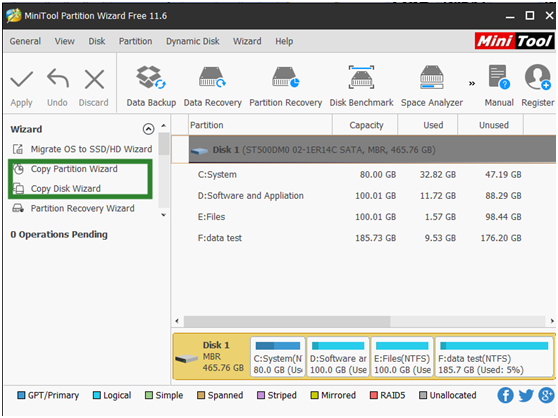 Copy Partition: if your important files are saved to a partition, this function is recommended.